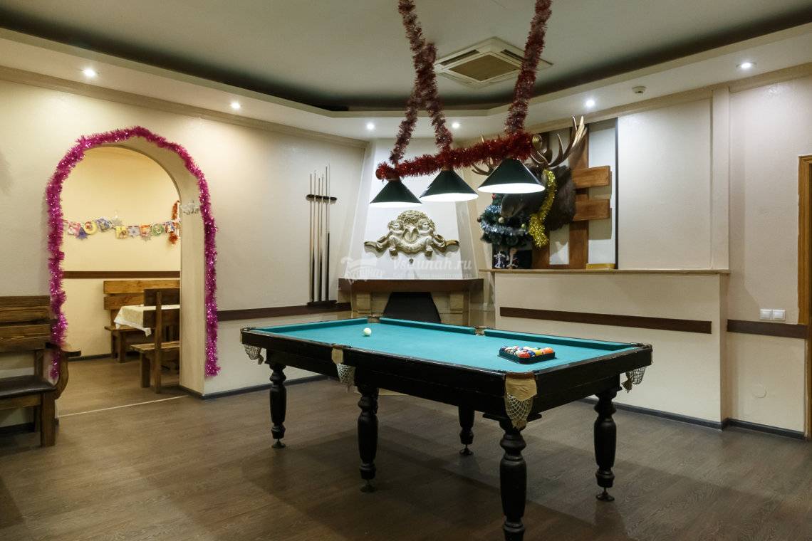 Иногда выбираемся с девчонками в сауну, очень душевно и весело проводим время. Большой зал с бильярдом. Есть караоке, только принимает наличные деньги.